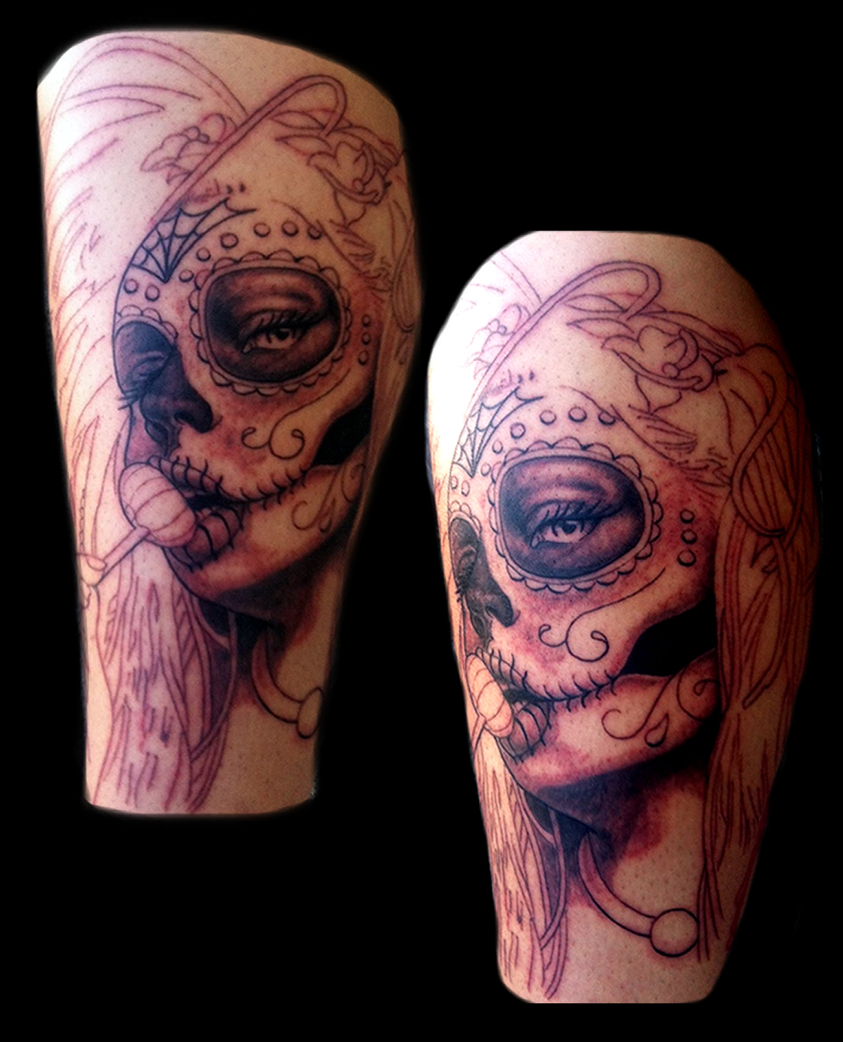 Biker Betty Boop Tattoo On Right Shoulder